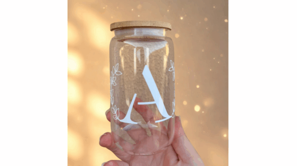 Botella de Vidrio con Inicial Personalizada Estilo Natural