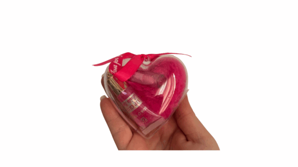 📦 Contenido: 1 lip gloss con empaque en forma de corazón.