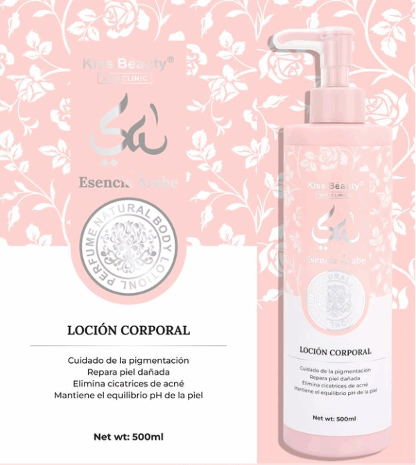 Consiente tu piel con la Loción Corporal Kiss Beauty Esencia Árabe, formulada para brindar hidratación intensa y cuidado diario. Su fórmula avanzada ayuda a reparar la piel dañada, reducir cicatrices de acné y mejorar la pigmentación, dejando la piel suave, uniforme y con un delicado aroma floral.